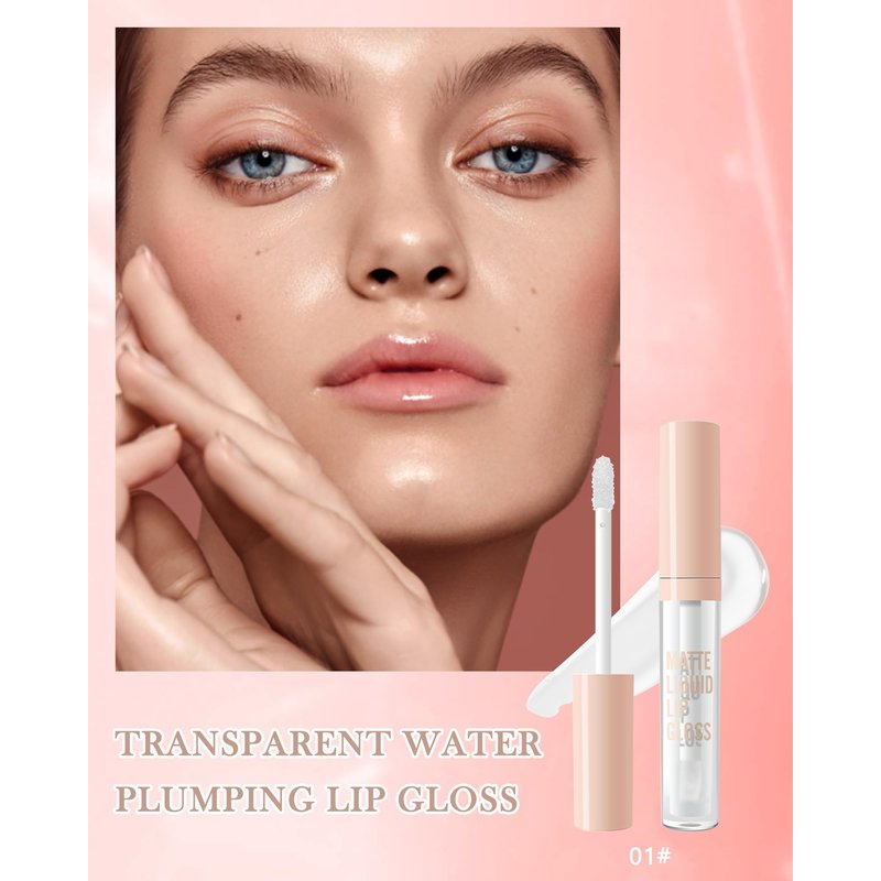 Hydrating Lip Plumper Gloss, Transparent Plumping Lip Gloss Liquid Lipstick, Long Lasting Non-Sticky Moisturizing Water Lip Glow Oil, Glass Finish Shiny and Vegan Lip Oil, Gift for Women & Girls-01#