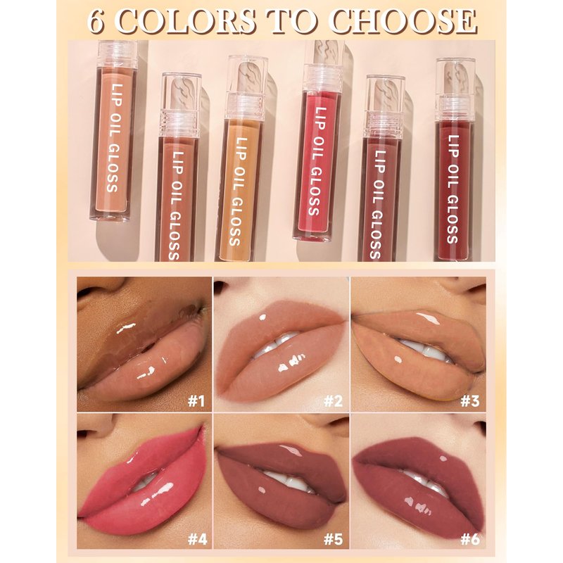 - GLOSSY LIP OIL TINT - The plumping lip gloss moisturizes and repairs your lips, hydrates and smooth lip surface & enhance lip contour. The vibrant color makes your lips look fuller and more vibrant. Try all 6 refreshing shades, one for every mood and occasion.