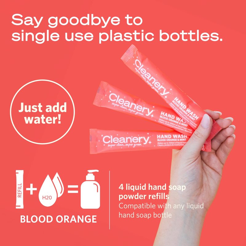 - LIQUID HAND WASH: The perfect bulk value refill pack that includes 4 Blood Orange + Mint scented powder concentrate packets