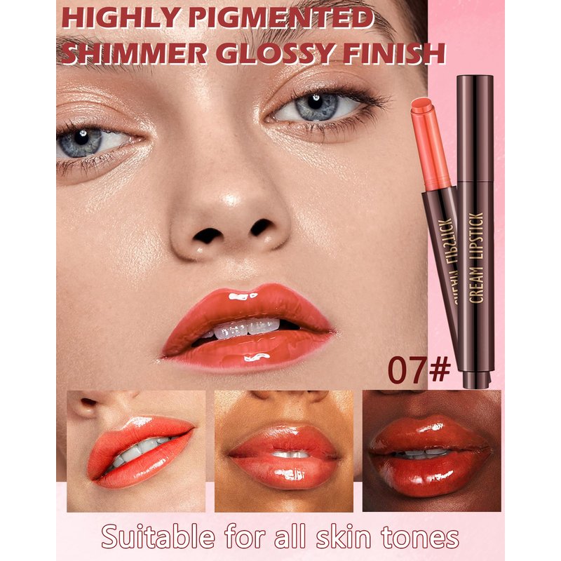 Hydrating Shimmer Lipstick,Moisturizing Jelly Lip Gloss,High Shine Dew Tinted Lipstick,Long Lasting Waterproof Tint Lip Balm Plumping Lip Stain,Non Sticky Glossy Butter Blam, Makeup Gift for Women-07#