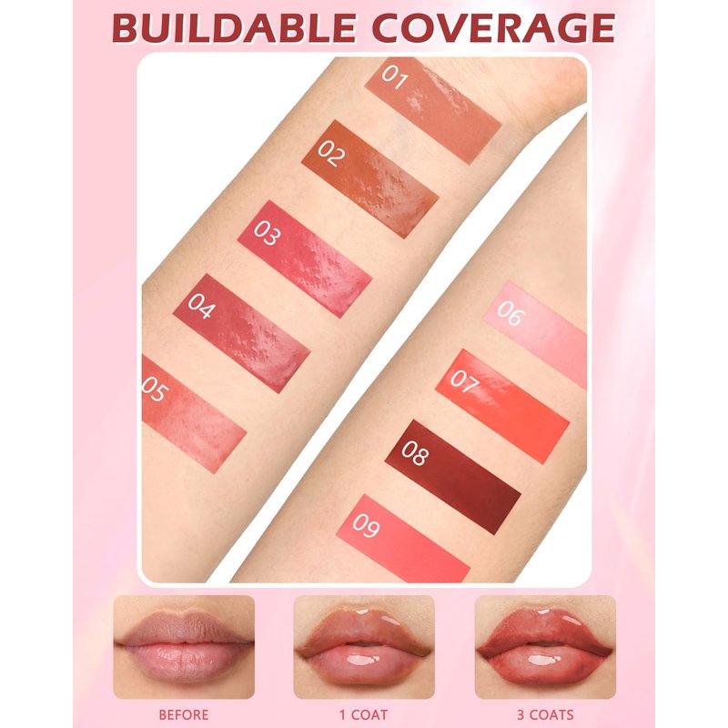 - ULTRA HYDRATION WATERY FORMULA - This high shine lip gloss is available in 9 charming shades for you to choose from, while providing superior moisturizing benefits. It can brighten and moisturize lips and is used to cover lip color and make lips plump. Say goodbye to dry, chapped lips! the highly pigmented, glossy formula plumps lips while delivering a soothing sensation. It perfect for chapped lips during dry seasons. Nourishes lips while maintaining beauty.