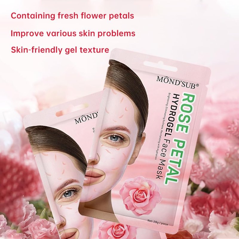 Hydrogel Collagen Sheet Mask with Rose Petal, Instant Brightening Hydrating Face Mask Sheet Mask for Firming, Elasticity Improvement 12-Pack