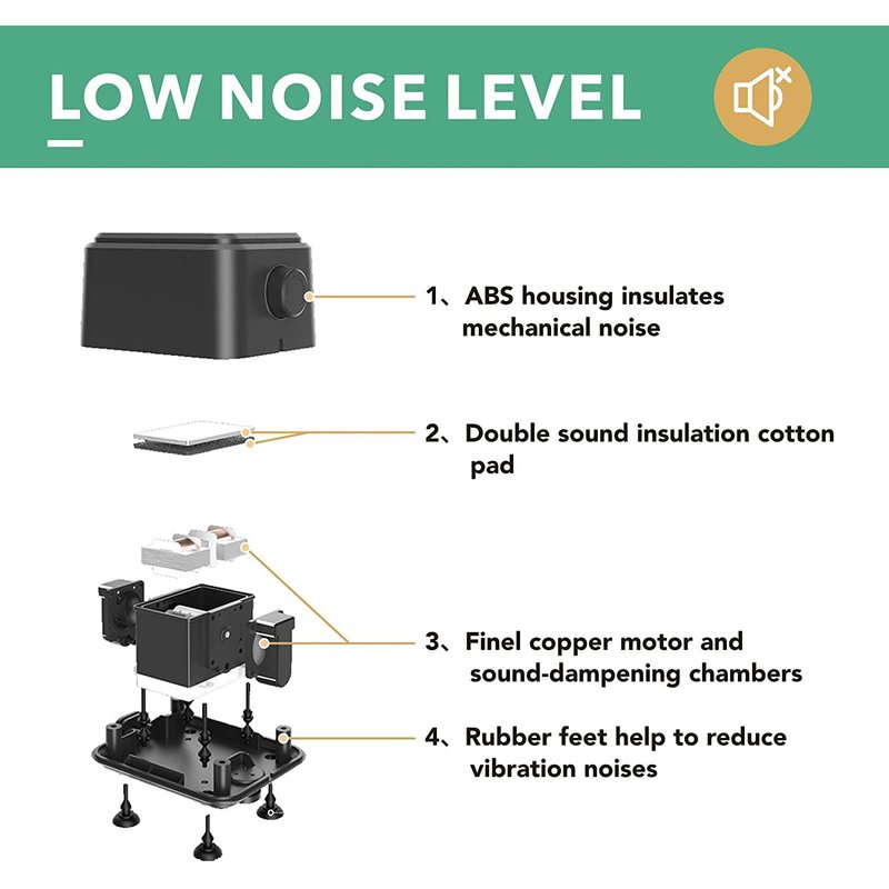 - 【Low Noise Level】: ABS thick shell and sealed inner baffle greatly reduces noise, while the soft rubber foot pad can effectively cushion the vibration produced by the motor