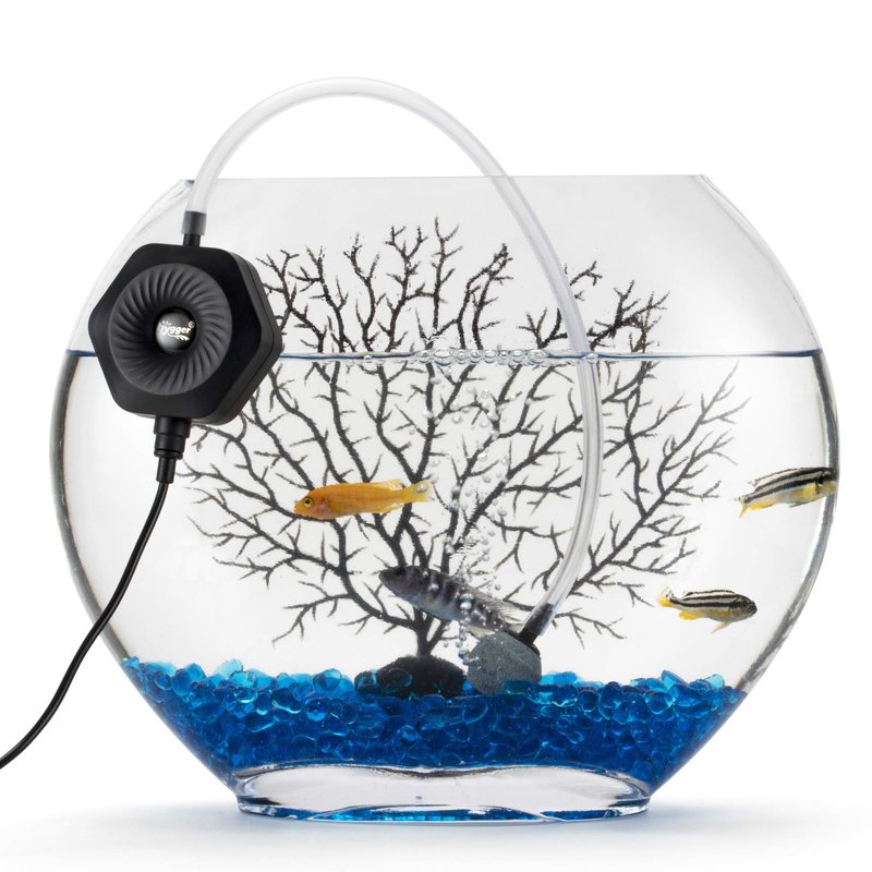 Hygger 971 Hexagon Air Pump helps to oxygenate the water through a mini air stone which creates a stream of little bubbles, thus aiding in water circulation. Compact tiny size is perfect for small aquariums and fish bowls up to 15 gallon. Build in a thin piezoelectric ceramic plate, it’s completely silent operation makes it perfect for bedroom, office and kitchen. It comes with everything you need: air stone, air tubing and a dual suction cup.