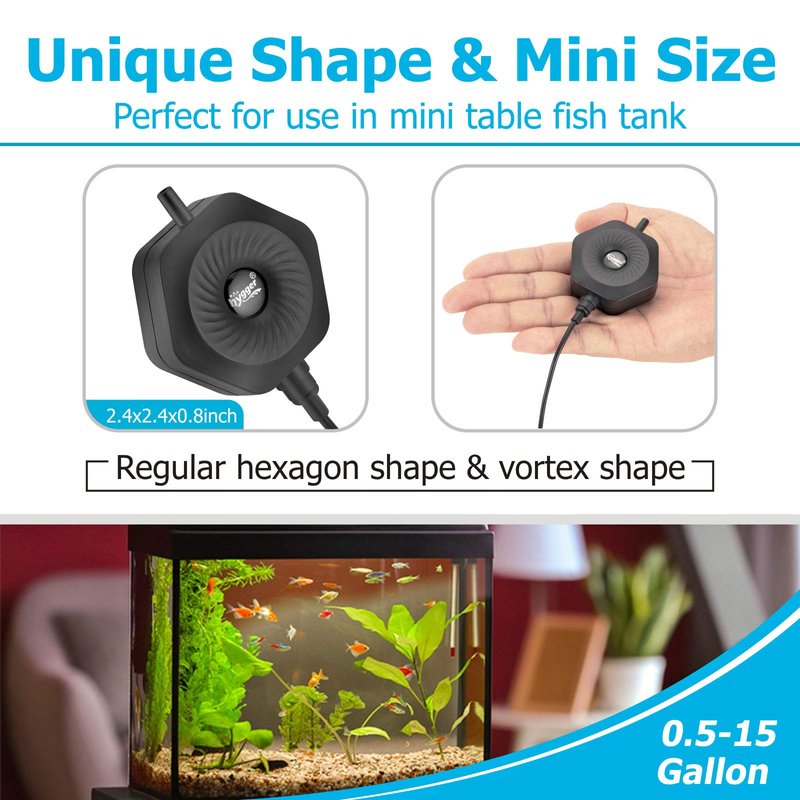 - 【Unique shape air aquarium pump】super compact and light weighted aquarium air pump, is not diaphragm air pump, durable to use. We provide 1 year warranty for this mini air pump kit