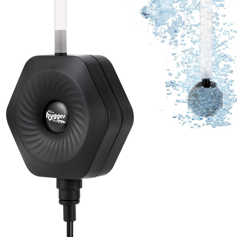 hygger 1.5W mini aquarium air pump Kit is designed for small fish tank/bowl use, to add more air into the water to keep the fish pets alive in the small space.