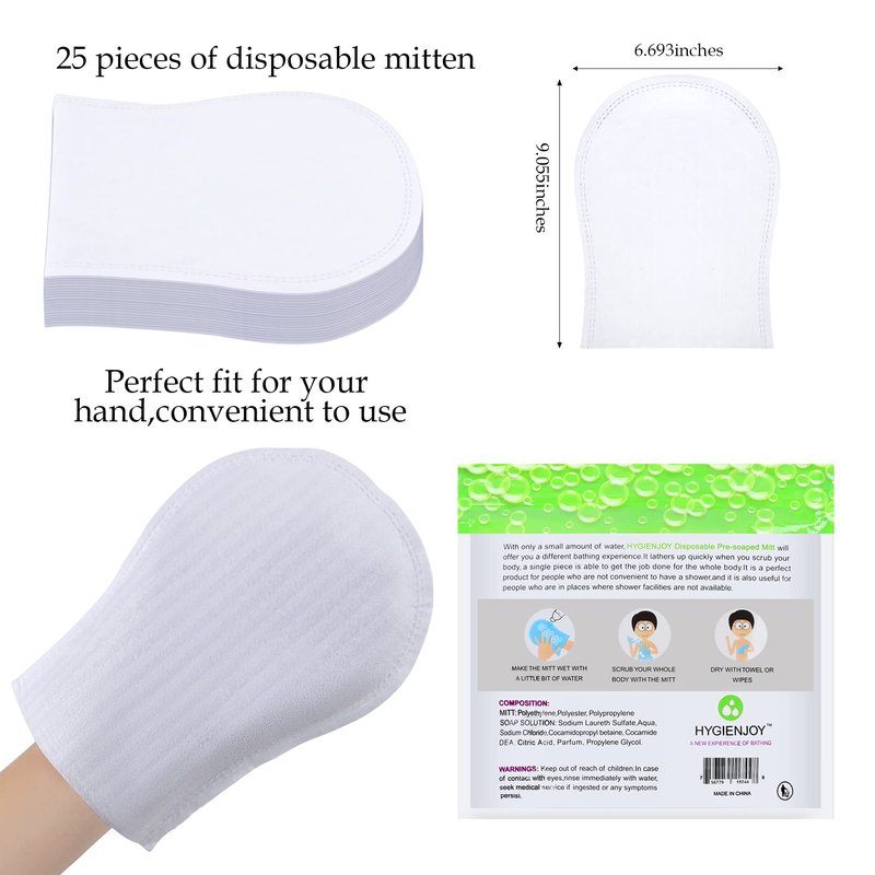 HYGIENJOY-Rinse Free Bath Wipes(25 counts),Disposable No Rinse Body Wash,More Convenient to Use,Mitten Shower Wipes,for Nursing The Elderly,The Injured and The Disabled (1 Pack)