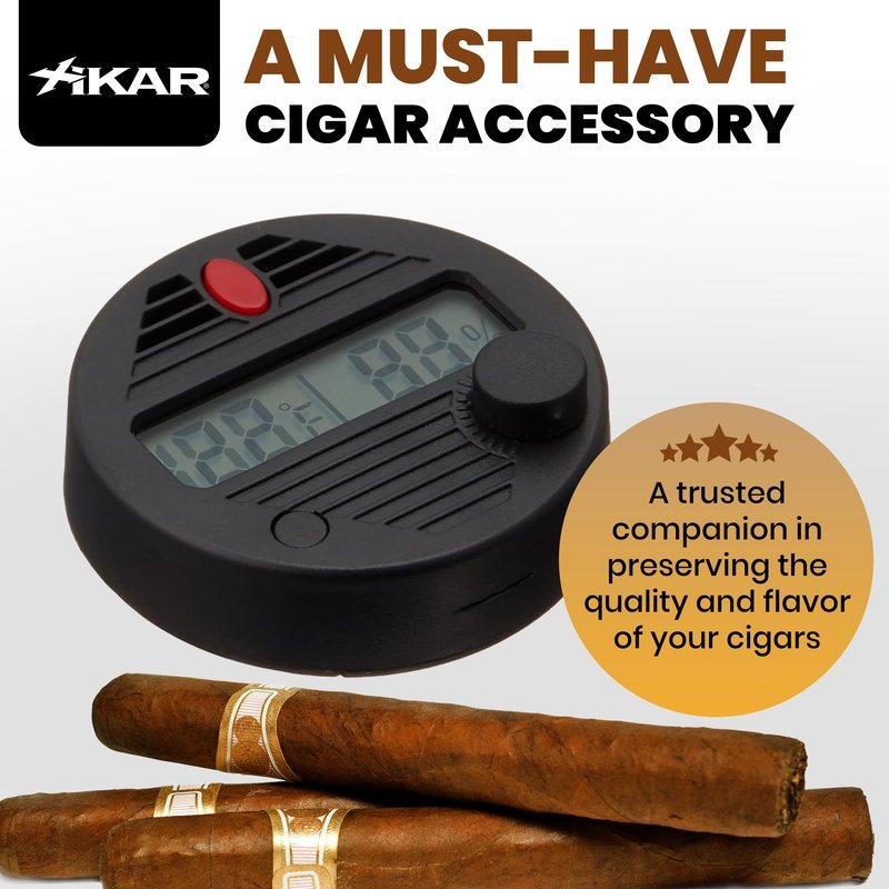 - Digital temperature and humidity display; Note: the HygroSet II round is not compatible with exterior mount humidor models