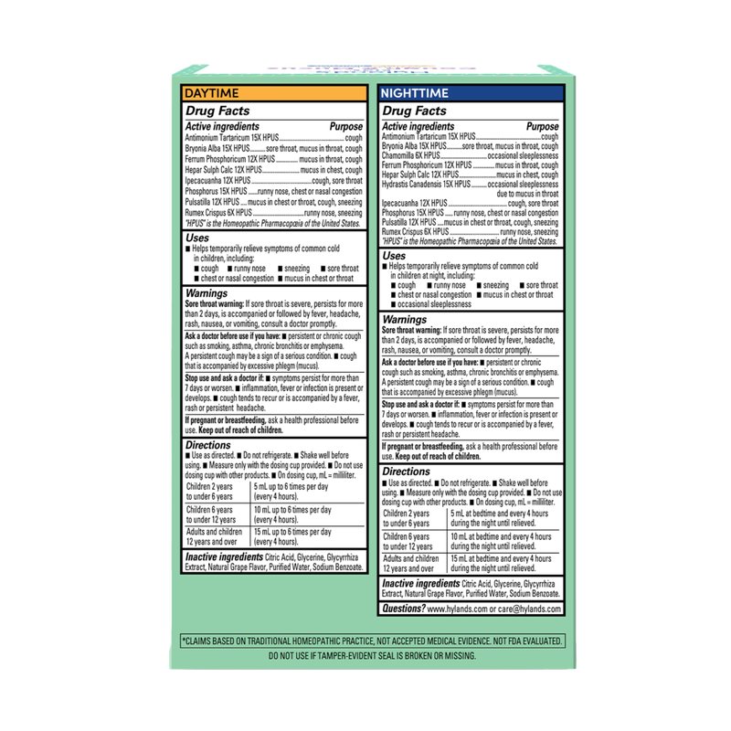 Hyland's Kids Cough Syrup and Mucus Relief Daytime and Nighttime Combo Pack, Kids Medicine for Ages 2-12, Grape Flavor, Promotes Sleep, Cough, Runny Nose, Mucus and Congestion, 8 Ounces