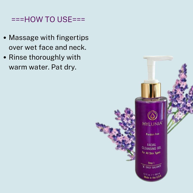Hylunia Facial Cleansing Gel - Organic Lavender, Hyaluronic Acid Serum - Acne - Pore Cleanser