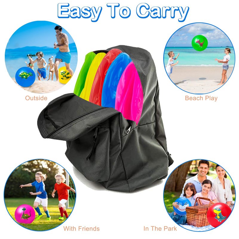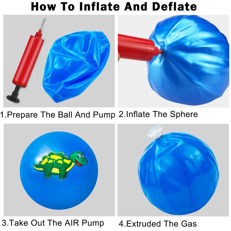 Hymaz 9 Inch 5 Pcs Bouncy Balls for Toddlers, Rubber Inflatable Bouncy Balls for Kids Ball Games, Soft Dinosaurs Sensory Balls with Pump for Indoor Outdoor Beach Playground Backyard Pool Class Games