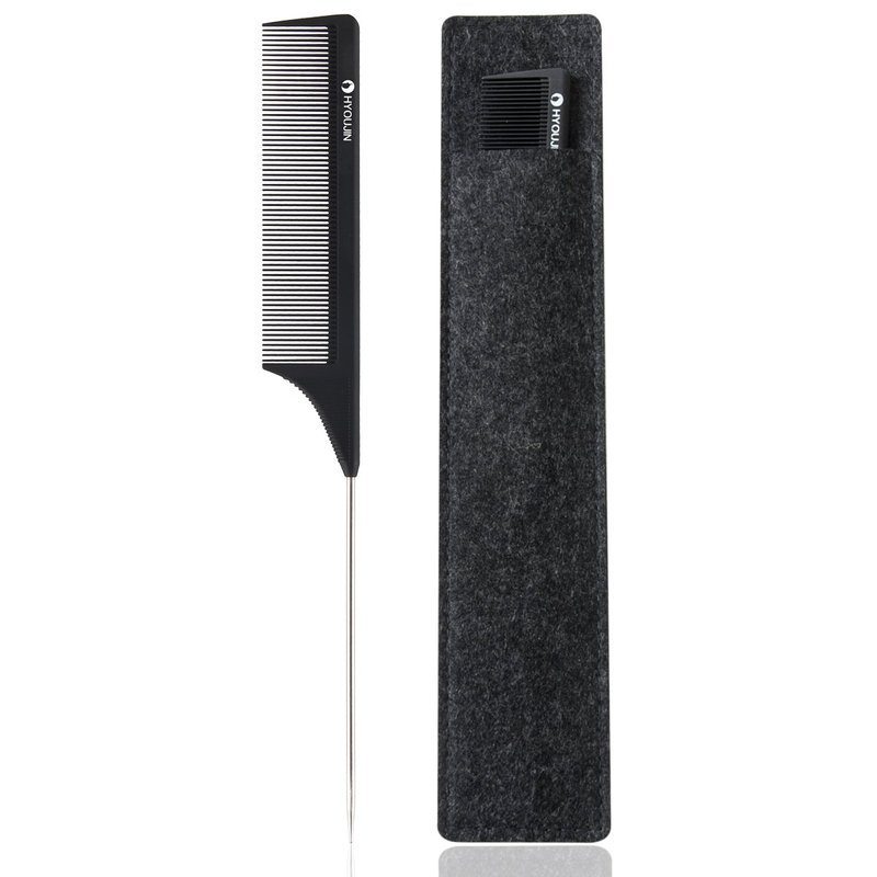 HYOUJIN Carbon Hair Rat Tail Combs Parting Rattail Combs Teasing Fine Tooth Comb Metal Hair Pick Detangling Combs for Women for Curly Hair Black