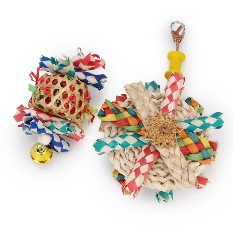 Package: 2 x Bird Chewing Toys(Roud Bite Cake + Woven Basket)