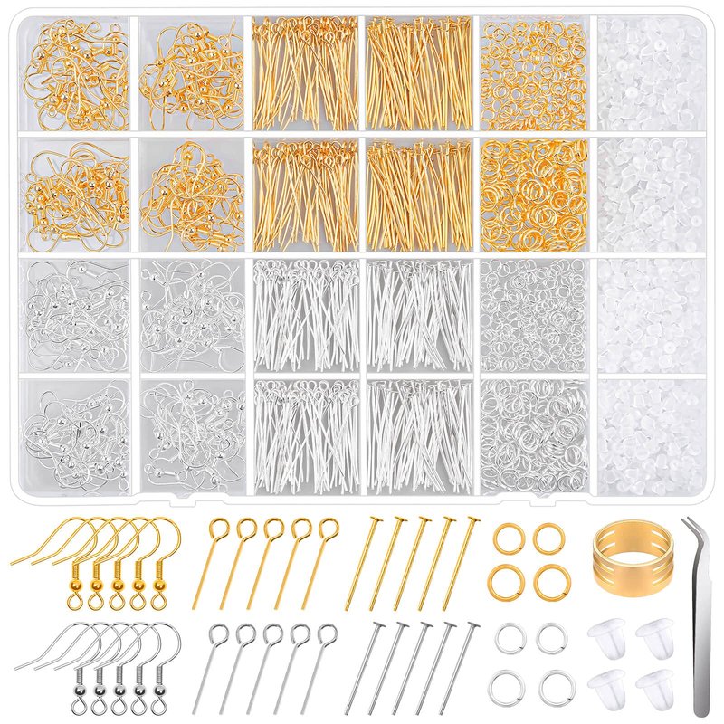 Hypoallergenic Earring Making Kit, modacraft 2000Pcs Earring Making Supplies Kit with Hypoallergenic Hooks, Earring Findings, Backs, Pins Jump Rings for Jewelry Making Supplies