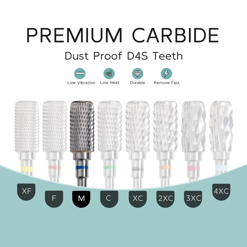 • High-Quality Material: Crafted from Y G6 premium tungsten carbide, hytoos nail drill bit ensure durability and a long lifespan and easy to clean. Whether you use them frequently or occasionally, these bits maintain their sharpness. Teeth Cut Grit from XF, F, M, C, XC, 2XC, 3XC, 4XC, choose correct teeth, Suitable for natural nails, artificial nails, acrylic nails, gel nails, nail extensions, polygel, cuticle removal, nail polishing, nail shaping, etc. meeting your different needs for nail art design.