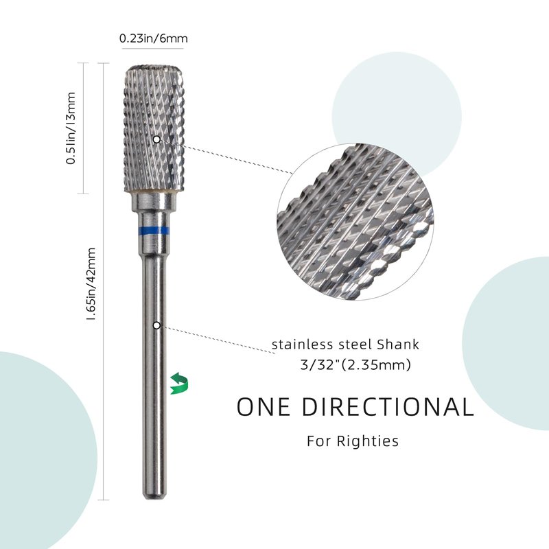 One-Way Rotation: The D4S teeth bit only for right-handed, 3/32"(2.35mm) stainless steel shank, low vibration, suits most professional electric nail drills machine.