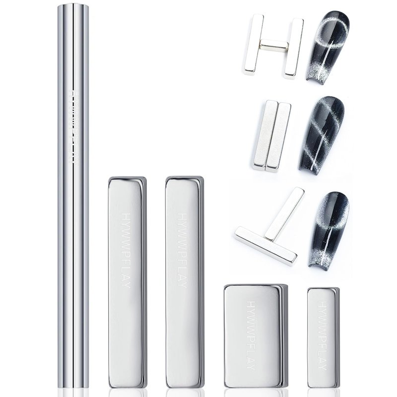 - Valuable Package: HYWWPFLAY 5pcs gel polish cat eye magnets, including: 1pc extra large cylindrical magnet wood, 4pcs mix-size rectangular magnetic stick, you can create more beautiful, magic nails according to your preferences.