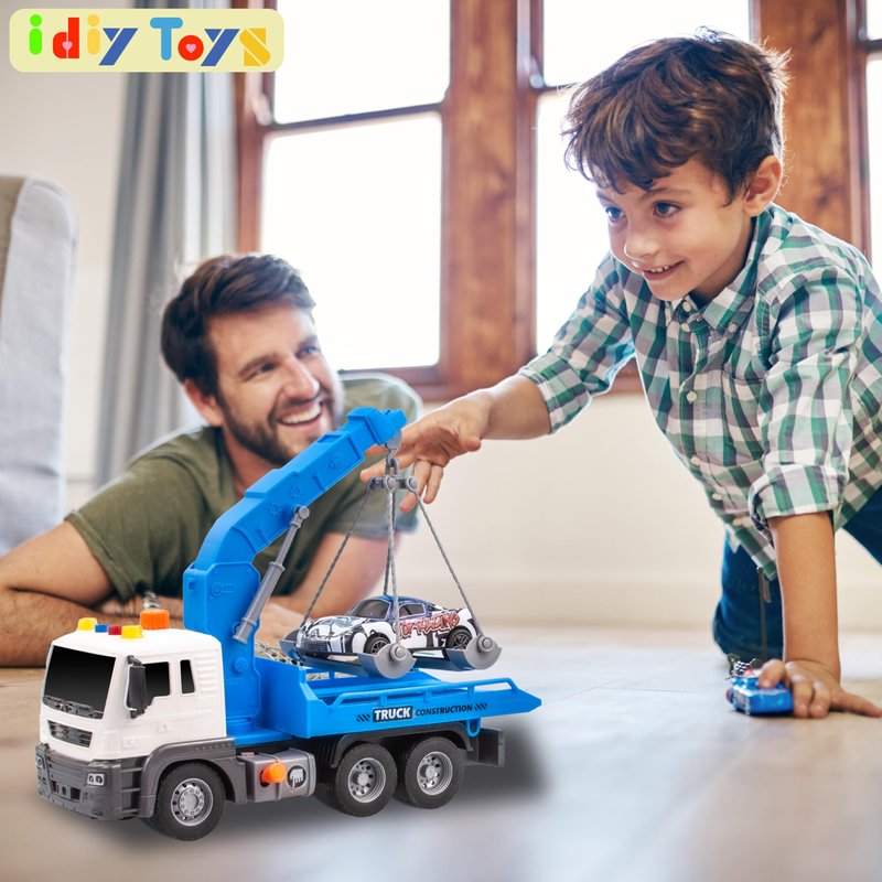 idiy Tow Trcuk Toy with Hook and car,friction power transport truck crane toy with light&sond for boys age 3-7 Boys