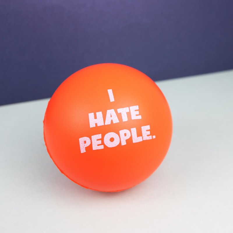 - STRESS BALL: Squeeze away the stress with our I Hate People Anti Stress Ball. Designed to fit perfectly in your hand, these grip strength balls are hilarious, and effective. INTENDED FOR AGES 15 & UP