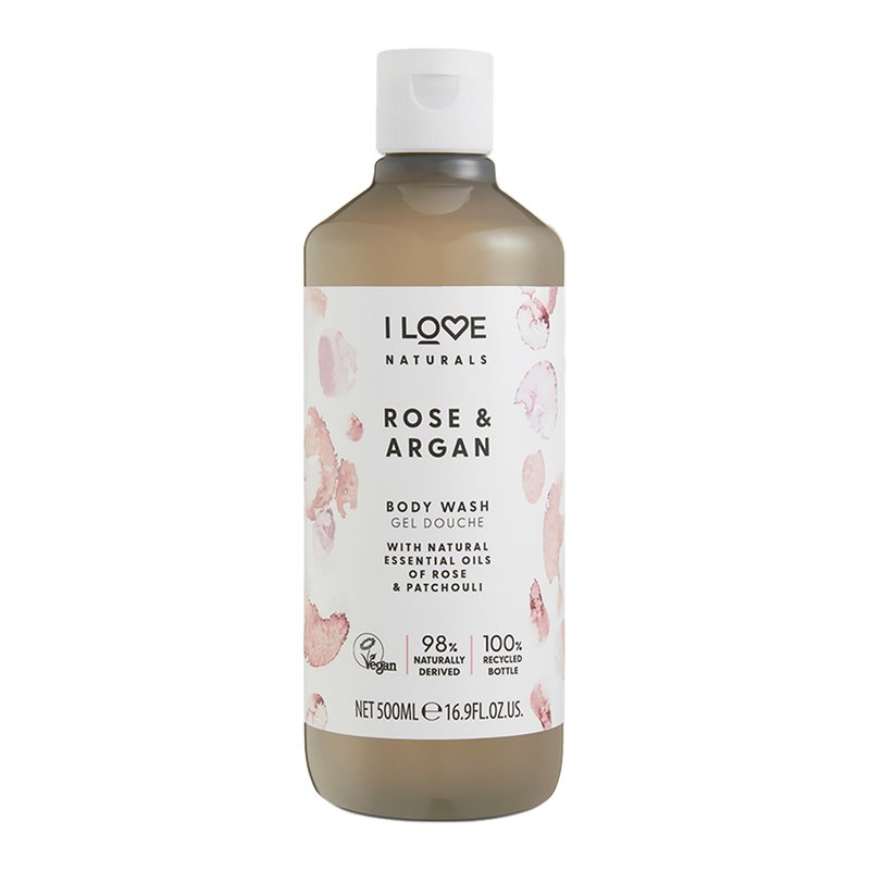 I Love Naturals Rose and Argan Body Wash - Moisturizing Body Wash - Infused with Essential Oils - Plant-Based Body Cleanser - 16.9 oz