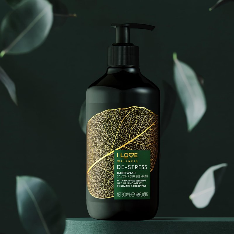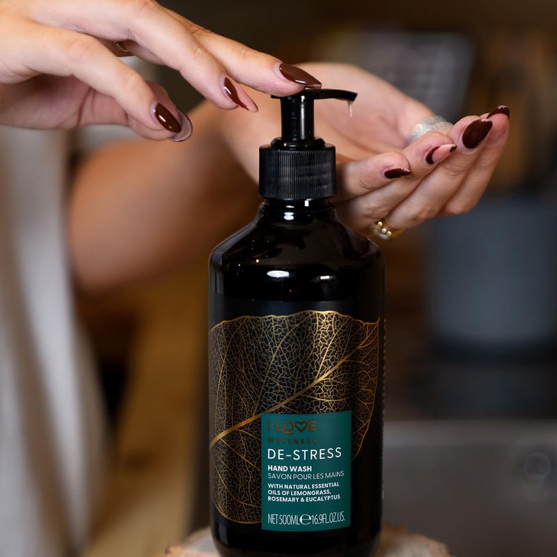 I Love Wellness De-Stress Hand Wash - Hydrating Hand Soap with Essential Oils - Naturally Fragranced with Lemongrass - With Vitamin E - 16.9 oz