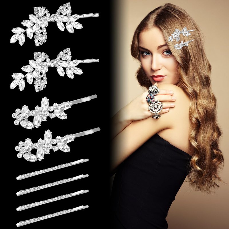 8pcs rhinestone bridal hair accessories decorated with transparent rhinestones for weddings, proms, parties, birthdays etc.