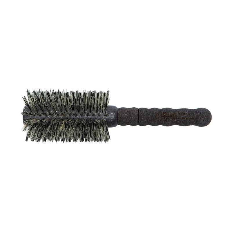 MB4 / 65mm - Round brush with blonde & black boar / carbon fiber nylon bristles & black extended cork handle. *Please note: Natural bristle brushes typically perform better once “broken in”. As Ibiza Hair brushes are natural boar bristle, they will change and move with age/use. We recommend soaking your new brush’s bristles in lukewarm water for 5-10 minutes, blot dry with a clean dry towel, lay flat and air dry. When dry, rub the brush between both hands to loosen bristles.