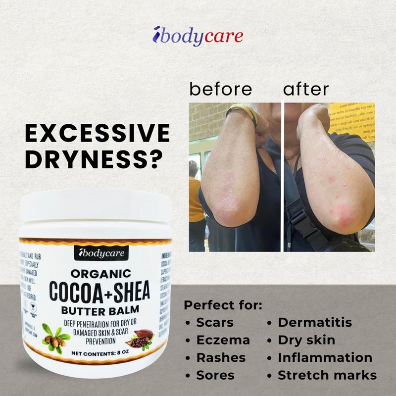 ibodycare Cocoa Butter Belly and Body Balm with Shea Butter, and Coconut Oil, 8 oz Organic, Raw, Unrefined Natural Body Butter Blend