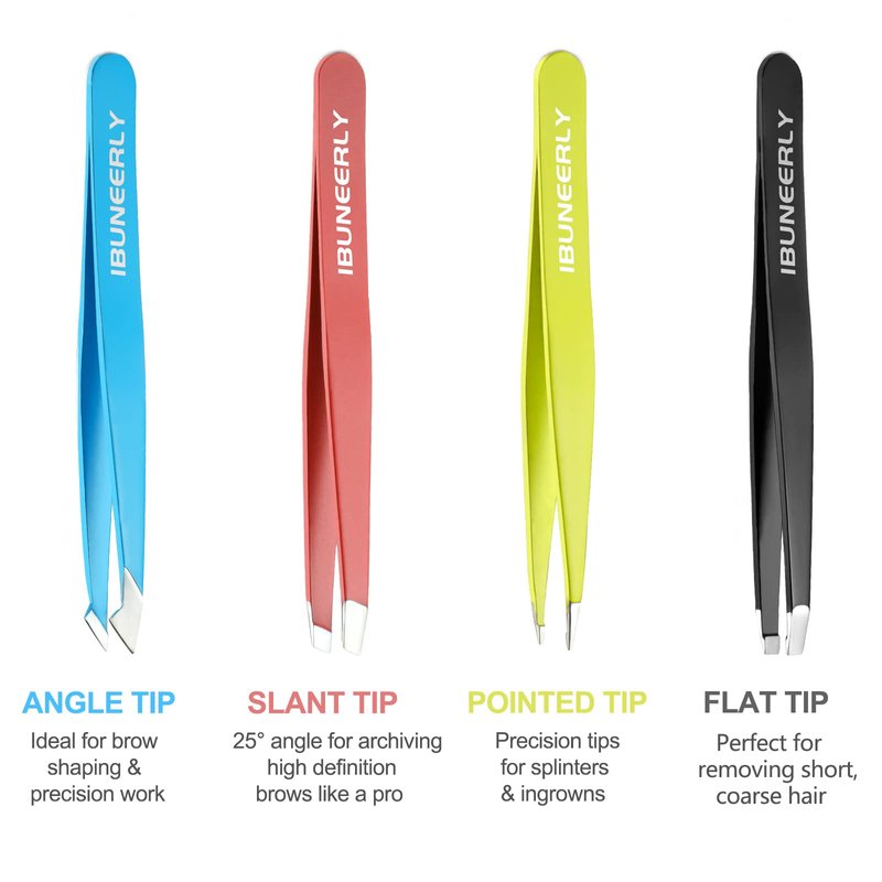 - ★【Best Tweezers for Women】: The tweezers set come with 4 different colors eyebrows tweezers: slant tip, angle tip, flat tip and pointed tip. Perfect for eyebrows shaping, ingrown hair, first aid, facial nose hair, meet all your any skin care or beauty routine.