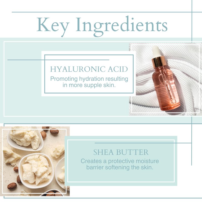 - Deep Hydration - Infused with Hyaluronic Acid, our lotion deeply moisturizes and helps to visibly plump the skin, reducing the appearance of wrinkles. Hyaluronic acid draws moisture into the skin, ensuring hydration.