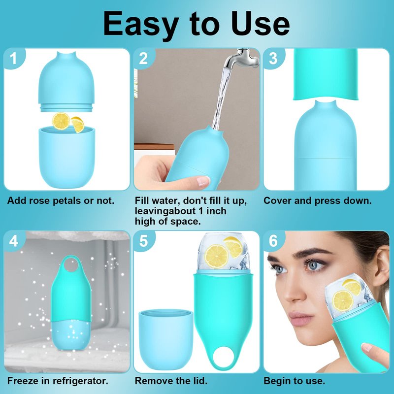 - š§ćEasy To Use & Reusableć Travel-friendly design, the ergonomic hand design is easy to grasp. Just add water to fill the ice mold for face to 90%, and put it in the refrigerator for 4-5 hours. After freezing, apply the ice to your skin in 30-second intervals in circular motions. For optimal results, use daily. (Please wait a few minutes before opening ice cube roller, or rinse under the water to loosen lid)