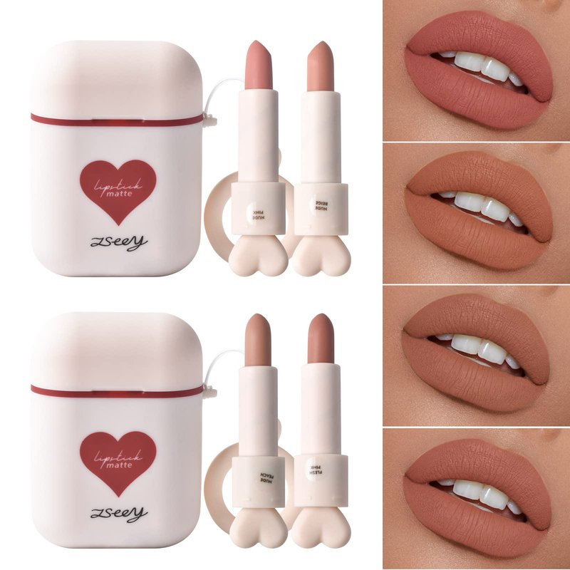 - 【Unique Appearance】: This matte lipstick set is designed in the shape of a headphone box, a heart-shaped double tube, two colors, delicate and easy to carry.