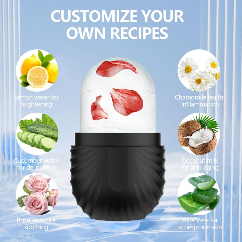 - Customize Preferences - Facial ice roller can enhance the skin care effect as per your creativity and customized formula according to your specific skin needs, such as lemonade for whitening, and coconut for improving skin. Even you can use a juicer to squeeze them into juice, then add water, essential oils, and roses to the ice tray.