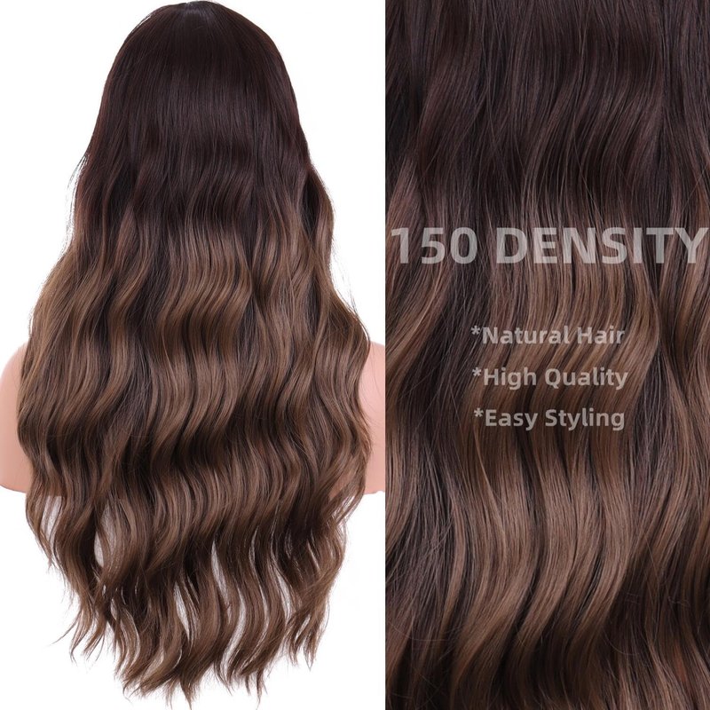 - Material: The synthetic long wavy brown wig is top-quality heat-resistant synthetic fiber made, which is soft and silky, close to human hair, natural looking and real ,tangle-free, shedding-free,easy to comb, and feels like real human hair, skin-friendly and soft hair made the wig very comfortable.
