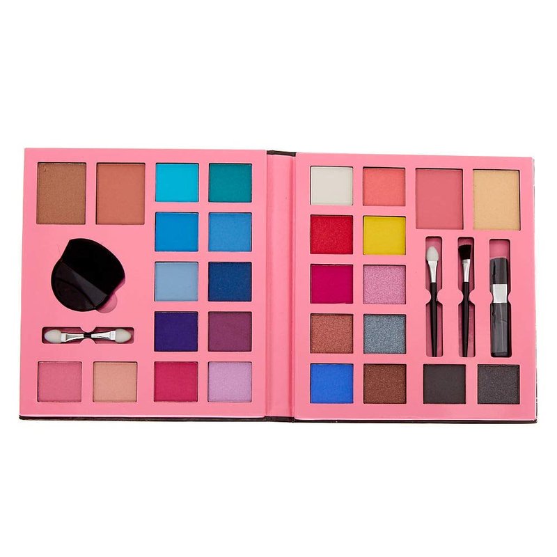 Complete your look with this makeup set! The set includes eyeshadow, blush, and applicators. Dimensions: 6.5" W x 7" H Material: Powder