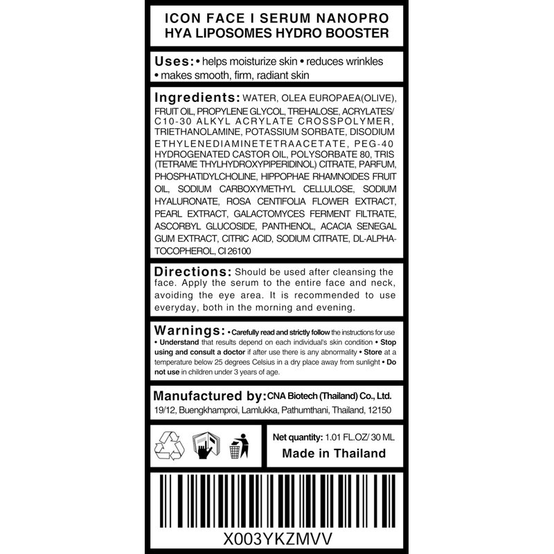Introducing the Ultimate Elixir for Timeless Beauty! 🌟 Rediscover Your Radiance 🌟 Are you ready to embark on a journey to age-defying allure and skin that radiates timeless beauty? Look no further! Our iCon Face iSerum - Nanopro Hya Liposomes Hydro Booster is here to transform your skincare routine into an indulgent experience that you won't be able to resist. ✨ The Power of 20x Nano Hyaluronic Acid ✨ Say goodbye to parched, lackluster skin! Our advanced formula harnesses the magic of 20 times the concentration of Nano Hyaluronic Acid, delivering 12-hour hydration that leaves your skin plump, fresh, and utterly radiant. Hyaluronic acid for ageless beauty is no longer a secret; it's your reality. 🌹 Nano Rose Sphere Essence: The Fountain of Youth 🌹 Prepare to be amazed as our Nano Rose Sphere Essence works its enchantment. Bid farewell to wrinkles and fine lines as it tightens your skin and reignites collagen production. This is not just a serum; it's your VIP ticket to youthful allure. Get ready to dazzle with a look that defies time! 🌟 Multi Pro-Hyaluron Innovation: Age-Defying Marvel 🌟 Our serum is a skin transformation like no other! Our exclusive Multi-Hyaluron Innovation combines five types of Hyaluronic Acid to supercharge hydration and awaken collagen production. The result? A fresh, age-defying radiance that you won't want to live without. Don't wait—snatch it up and ADD TO CART now! 🌿 Nature's Treasures for Your Skin 🌿 Infused with the purest gifts from nature, including Pearl Extract, Olive Leaf Oil, and PhytoCollagen, our serum unveils your skin's innate radiance. This isn't just skincare; it's a luxurious journey towards a healthier, more beautiful you. Pamper your skin with the richness of natural ingredients. ✨ Luminous Perfection: Your Skin's Dream ✨ Say goodbye to uneven skin tones and hello to luminous perfection! Natural Arbutin and Galactomyces Ferment Filtrate join forces to deliver brighter, more even skin. Rediscover your radiant