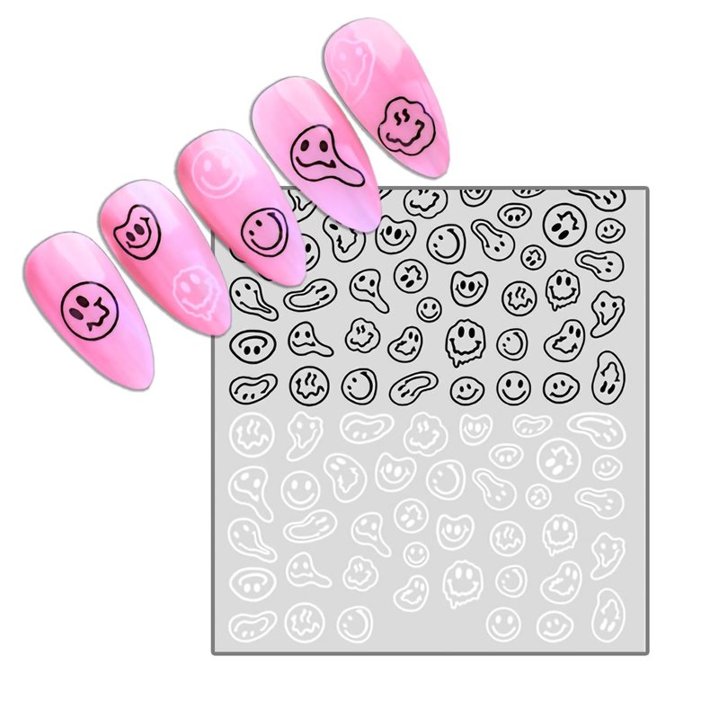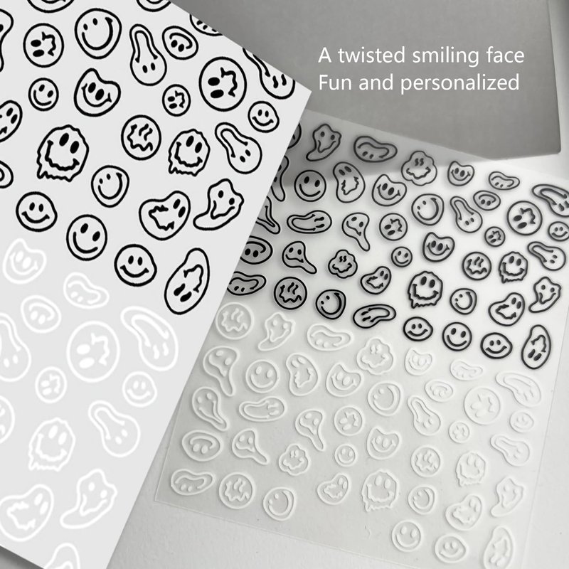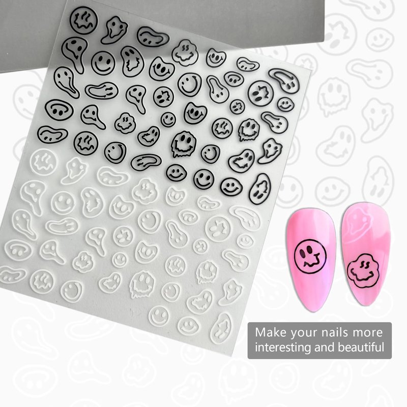 ICSTM Nail Stickers for Women,Fun Nail Art Stickers,Nail Decals 3D Self-Adhesive Fashion Trend Charm,Twisted Smiling Face Nail Design,Nail DIY Decoration for Women and Girls (Black+White 1pack)