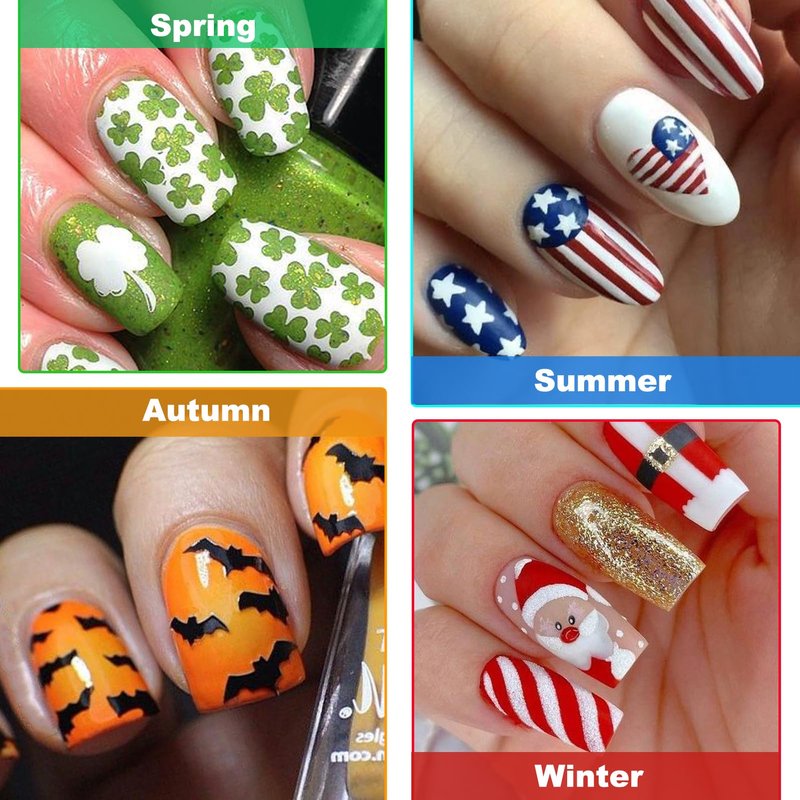• Year-Round Stickers - This set of stickers is designed with the seasons in mind, highlighting the main patterns of each season, featuring different patterns and festivals. Including various styles of flowers, fruits, anchor, maple leaves, heart, Halloween, Christmas and Valentine's Day, ensuring your nails are always on-trend and ready for any occasion!