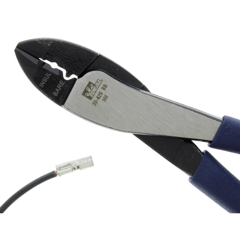 - Product Specifications: 9.75 in. long IDEAL Electrical Crimp Tool is equipped with Dipped-Grip PVC handles, knife-to-anvil blades, and high leverage pivots for easy crimping/cutting