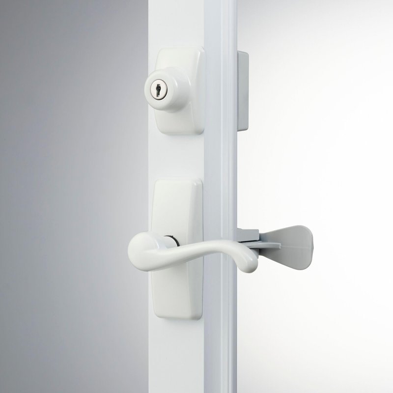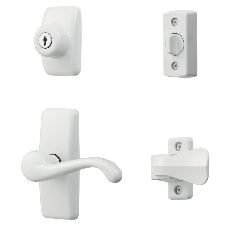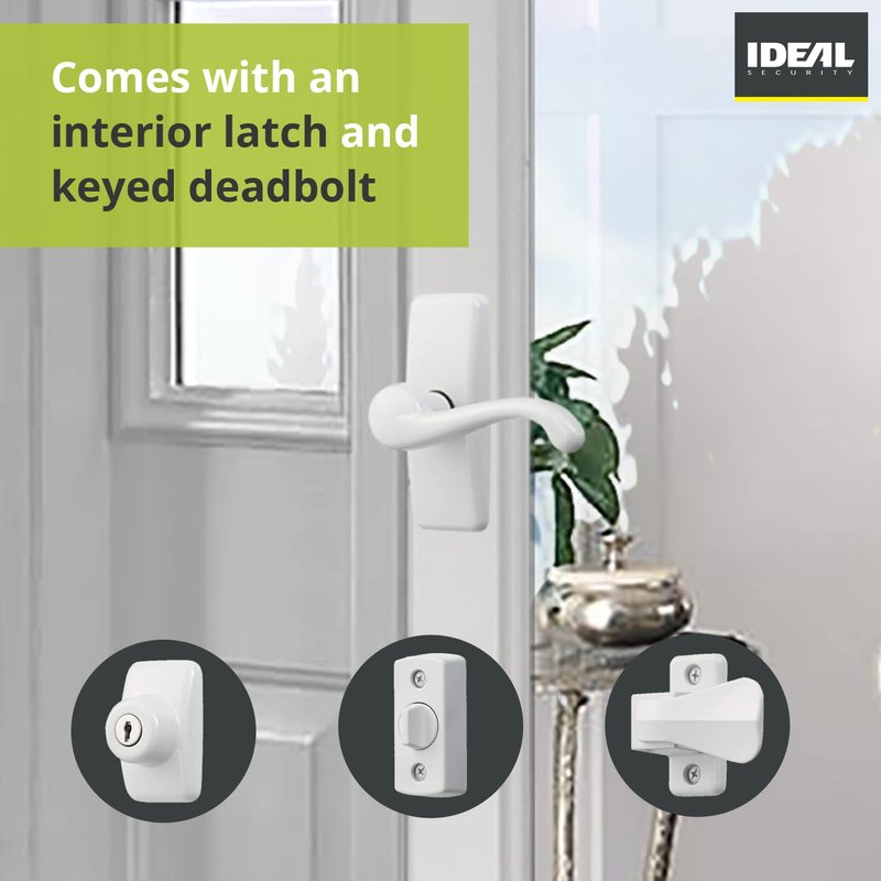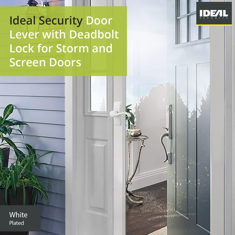 Ideal Security Door Lever with Keyed Deadbolt Lock for Storm and Screen Doors, White (4-Piece Set)