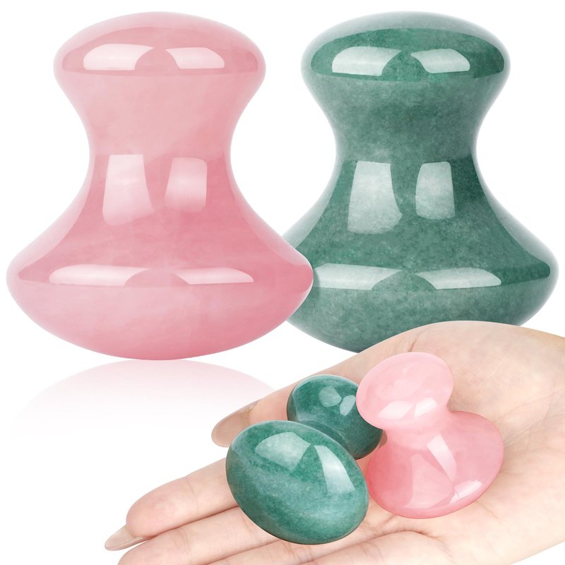 ideayard Mushroom Gua sha 2Pcs Jade Eye Massage Facial Tool Smooth Cute Mushroom Shaped Scraping for Women SPA Lift Remove Wrinkles (Rose Quartz+Green)