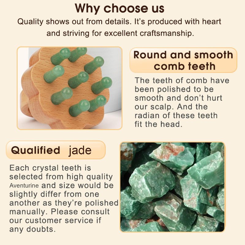 - Real Jade:The comb combines jade and wood, and the massage part is made of real jade. The natural material is healthy for the skin.