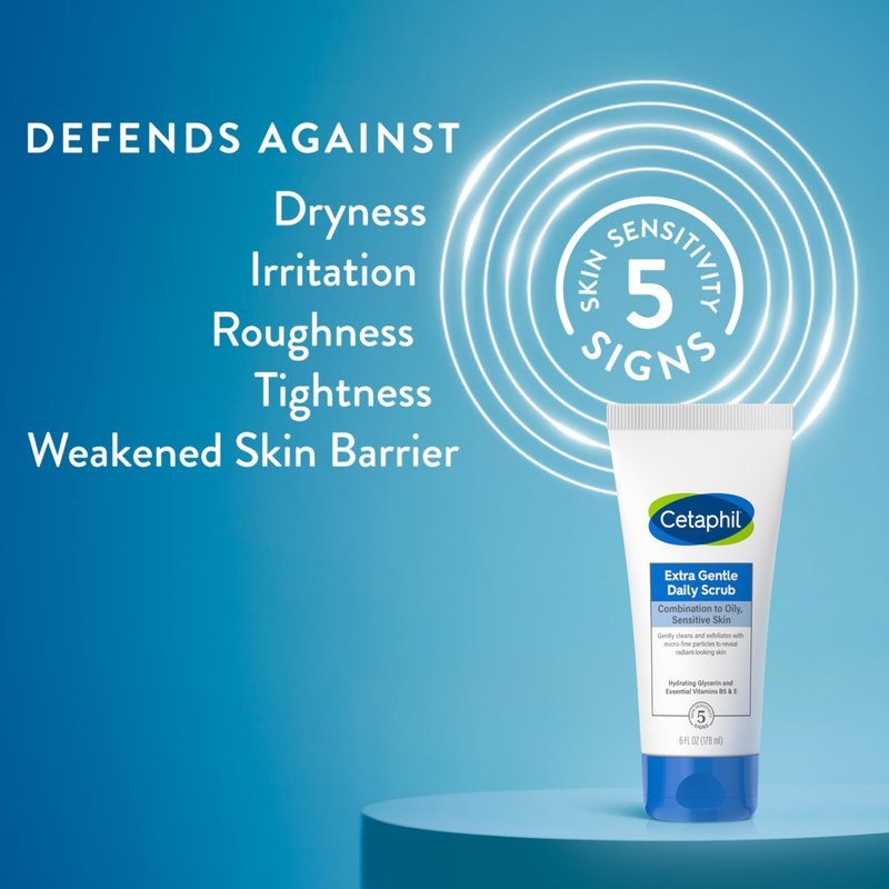 - GENTLY EXFOLIATES TO REVEAL RADIANT LOOKING SKIN: Cetaphil Extra Gentle Daily Scrub gently buffs away dry, dull skin while cleansing to support natural surface cell turnover; The result is improved skin texture to reveal healthy glowing skin