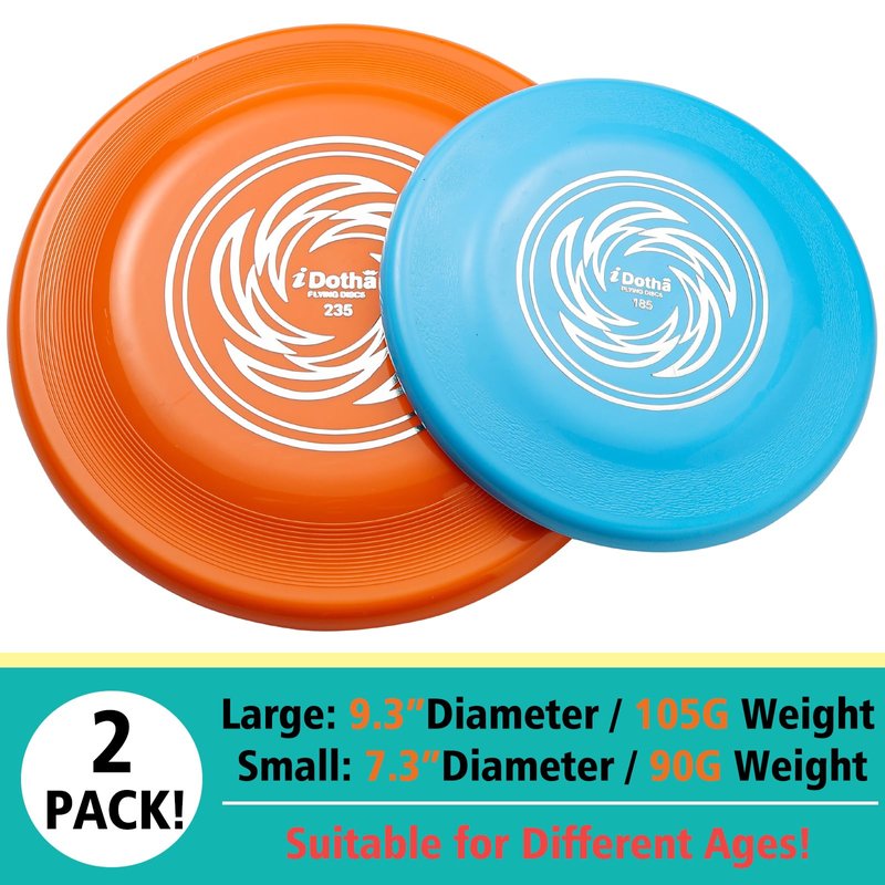 iDotha Sports Flying Disc, 2 Pack Compeition Flying Discs, Lightweight Durable Flying Disc Toys for Backyard Beach Lawn Park Outdoor Games, 105 Gram 9.3 Inch & 90 Gram 7.3 Inch.