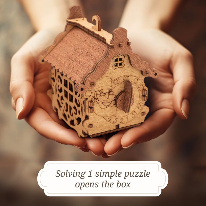 - ♻️SUSTAINABLE PRODUCT - crafted from quality birch wood iDventure New Year and Christmas box stands out among other 3D puzzles for adults with its unique concept and elegant wooden design. All parts of the Happy New Year wooden box are precision-cut from high-grade birchwood using fine laser technology and decorated with detailed features. With its appealing wooden design, this puzzle gift box is an instant eye-catcher and a great gift idea