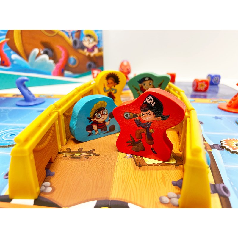 - INCLUDES 1 super cute Kraken figurine, 1 ship board, 1 Kraken tracking board, 8 Tentacles figurines,40 action cards, 4 Player Aid cards, 4 Pirate pawns, 8 Ship’s Rails, 4 Hole tokens, 3 Kraken Attack tokens, 4 Whirlpool tokens. The illustrated rulebook comes in English, Spanish, French and German