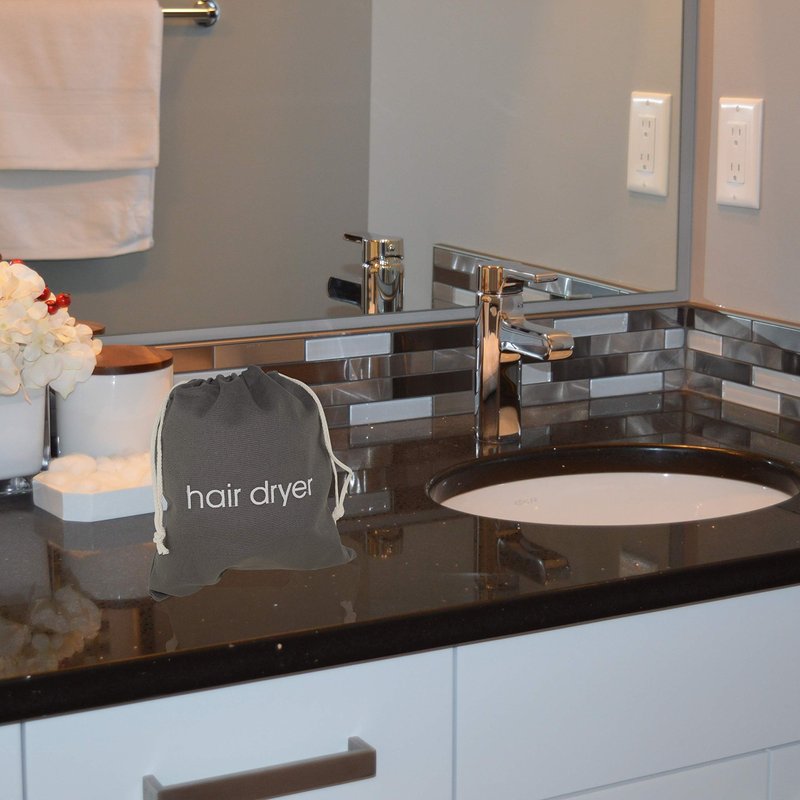• APPEARANCE: This cotton hairdryer bag with drawstrings is embroidered with the words “hair dryer”, easy for your home guests to find. This bag will be one of your favorite hair dryers accessories.
