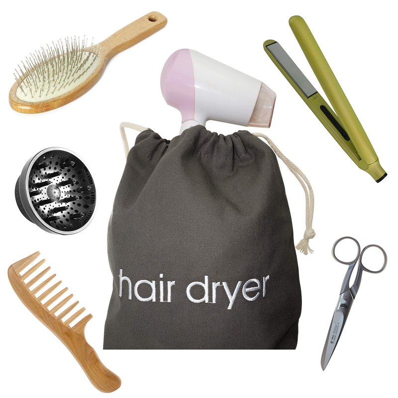 This drawstring bag helps you to organize the messy cords and prevents your hair tools from dust and damage.