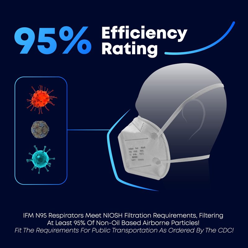 IFM INDIANA FACE MASK N95 Respirator Masks | Box of 25 | NIOSH APPROVED N95 | Made in USA | Particulate Respirator >95% | Individually Wrapped | Universal Fit | Certified Particulate Respirators