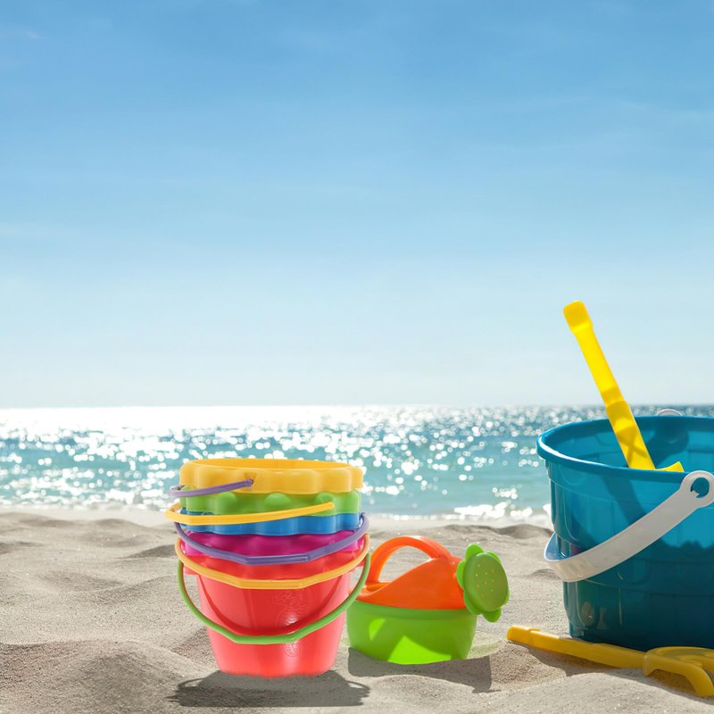- Colorful Sand Buckets:These bright colorful sand buckets are great for a fun day at the beach. for summer days spent at the beach or poolside